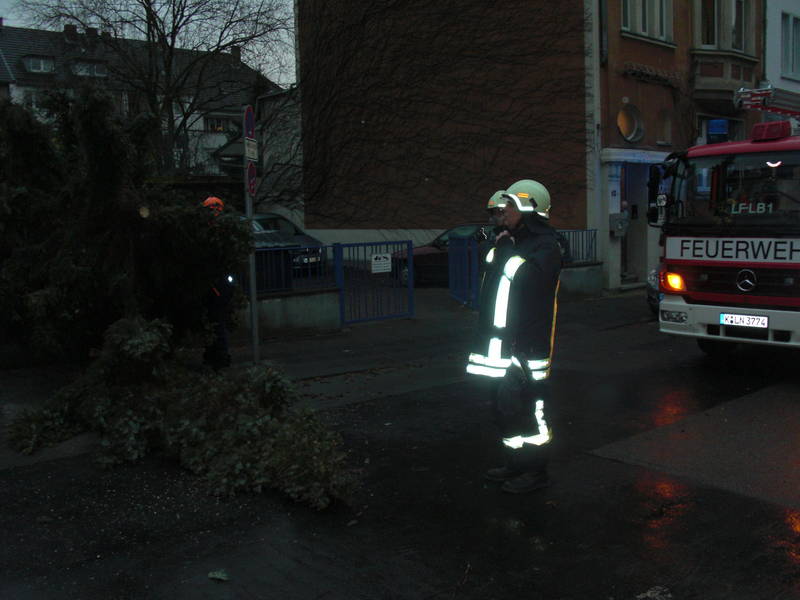Das abgerissene Kreuz der Kirche in Libur ist mit den Mitteln der Feuerwehr nicht effektiv zu bergen, auch eine Drehleiter reicht nicht aus.Die weiteren, für einen Sturm typischen Einsätze, verteilten sich auf die Stadtteile Porz-Langel, Wahn, Eil, Neustadt Nord, Rodenkirchen, Mülheim, Deutz, und Altstadt Nord. Die Aufgaben für die Löschgruppe lagen dabei ebenfalls im gewohnten Bereich. Neben der Navigation zu den einzelnen Einsatzstellen, die an sich schon mal zu einer Herausforderung werden kann, wurden Bäume gesägt, Bereiche abgesperrt und Anwohner informiert.